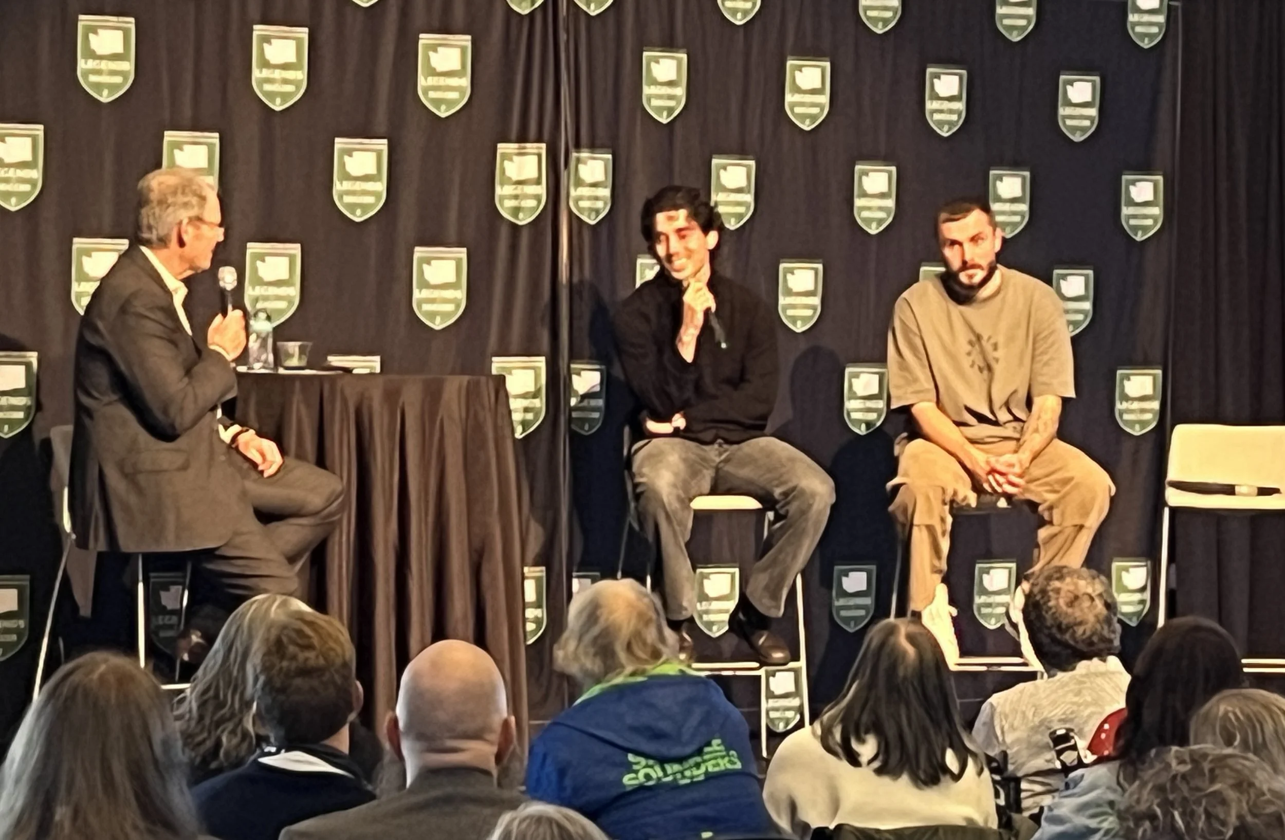 Paul Rothrock and Jordan Morris join Brian Schmetzer on stage.